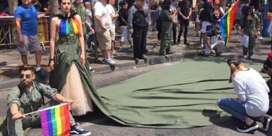 THe resist dress was designed in support of LGBT people serving in the armed forces. the dress has traveled to Madrid, San Francisco, and LA Pride